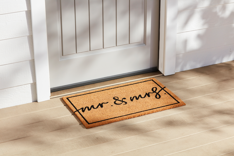 Welcome guests with the charming Mr. and Mrs. Doormat, a delightful addition to any entryway. Crafted from 100% natural coir, this woven door mat offers durability and a rustic aesthetic that complements any home decor. Measuring 18" x 29", it provides ample coverage to keep dirt and debris at bay, ensuring your floors remain clean. The natural coir fibers are not only eco-friendly but also highly effective at scraping shoes clean, making it a practical choice for busy households. With its welcoming design, this doormat adds a touch of personality and warmth to your doorstep, making it the perfect greeting for family and friends.